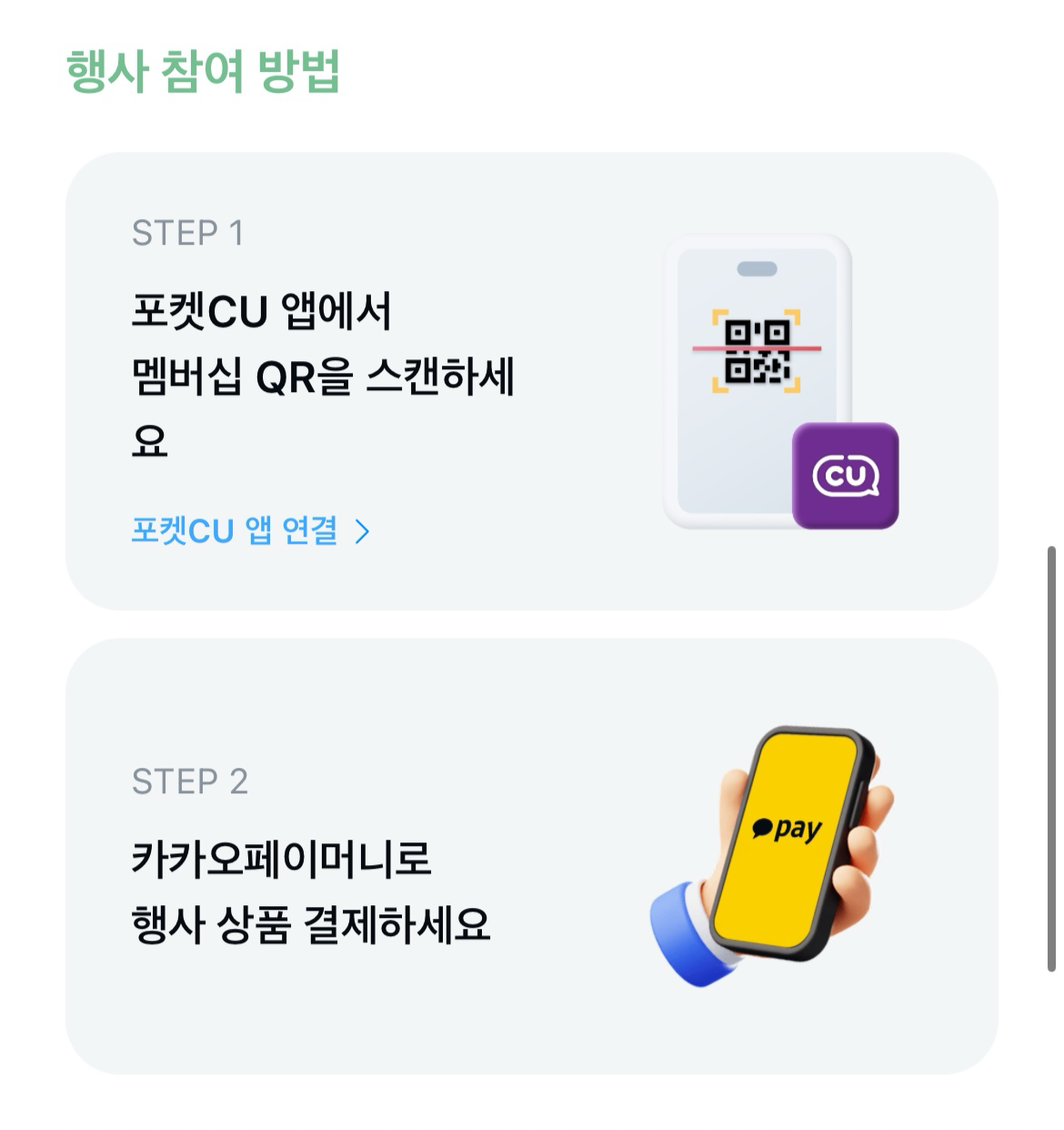 ✅ 3. 카카오페이에 CU 멤버십 연결 시, 5% 할인 + 5% 적립 혜택