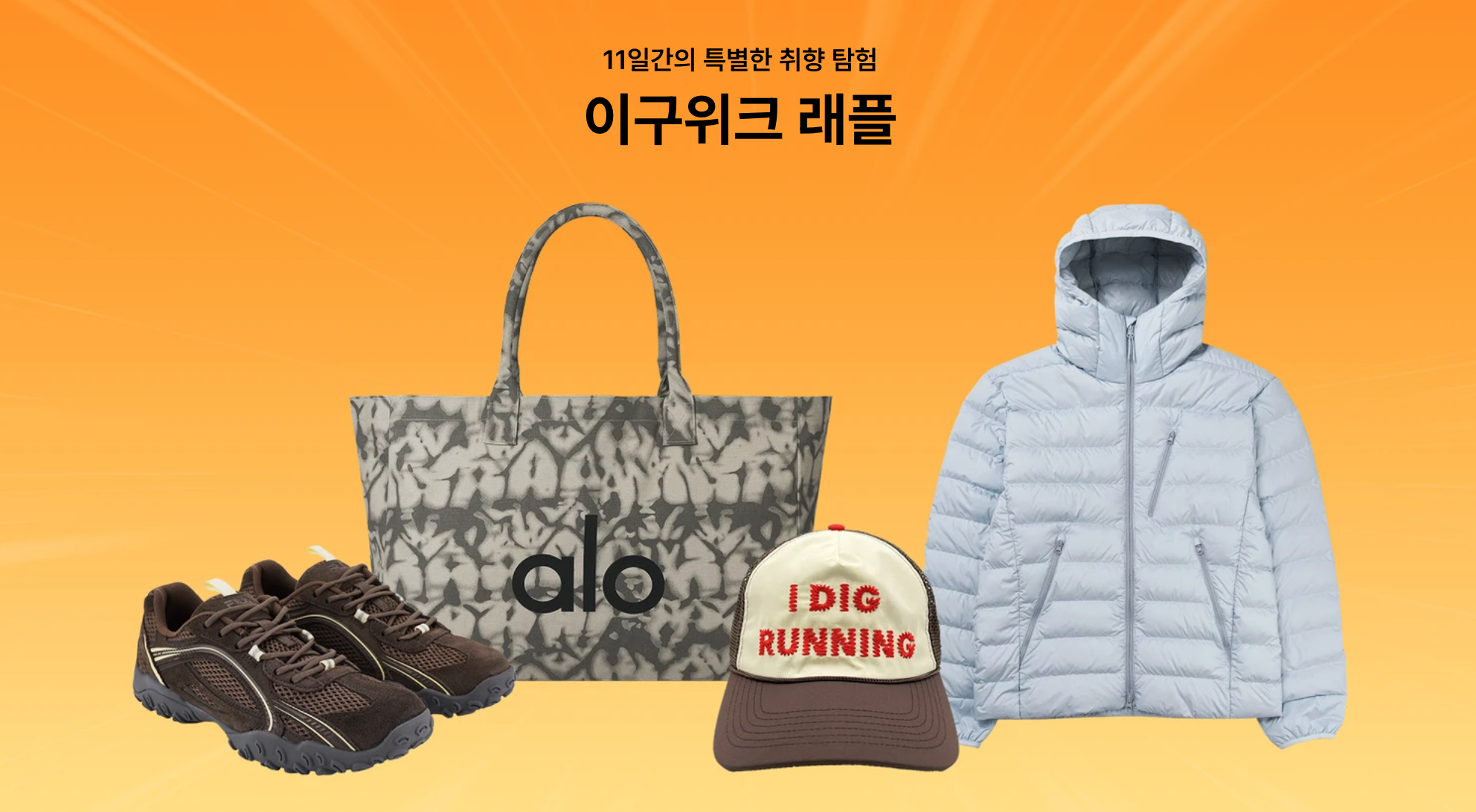 : 휠라 에샤페 초코, 무신사 스탠다드 시티레저 후드 라이트 다운 자켓, 스타우브 원형 꼬꼬떼 18cm 화이트 트러플, 알렉스 조노 아이 디그 러닝 볼캡, 알로 요가 아이코닉 쇼퍼 토트백