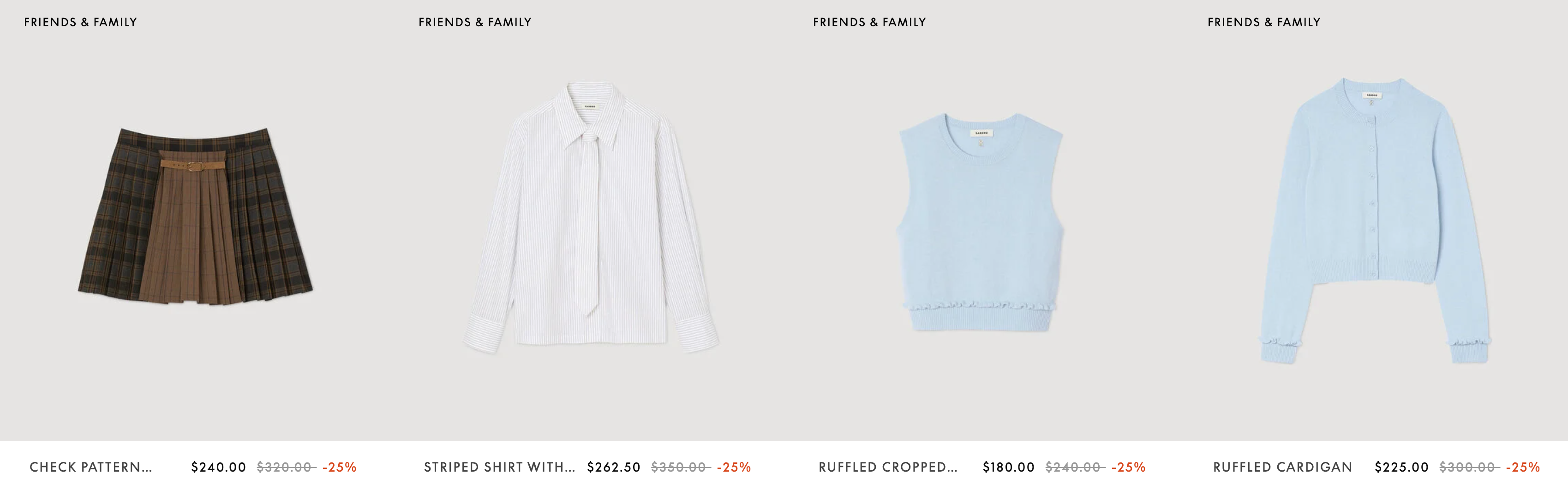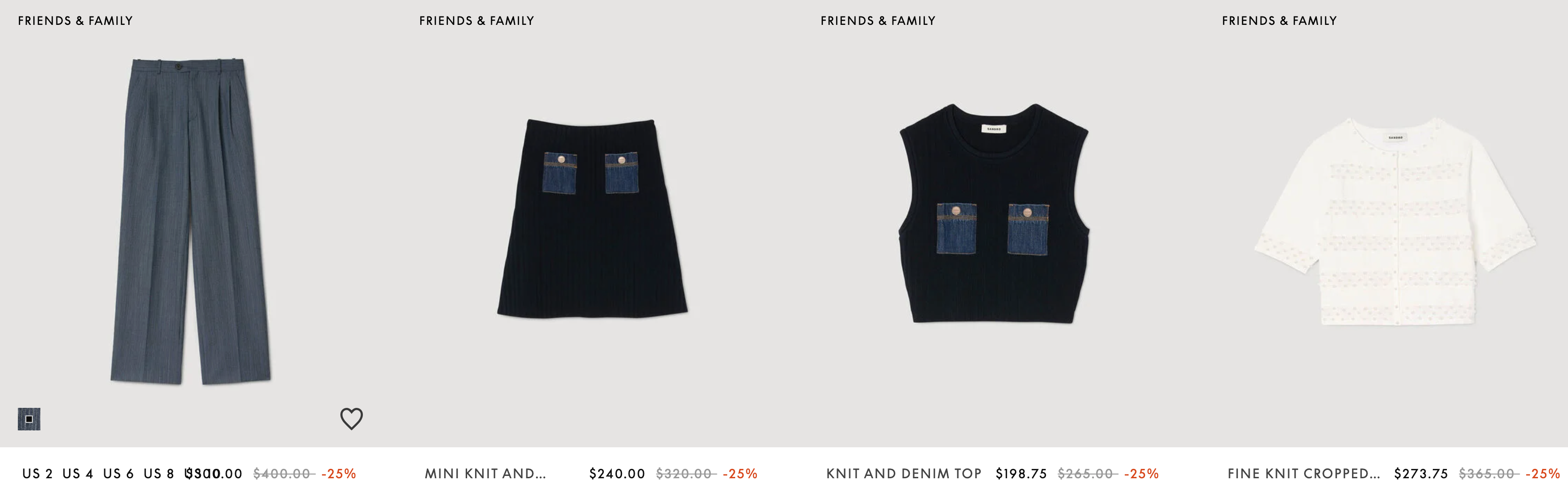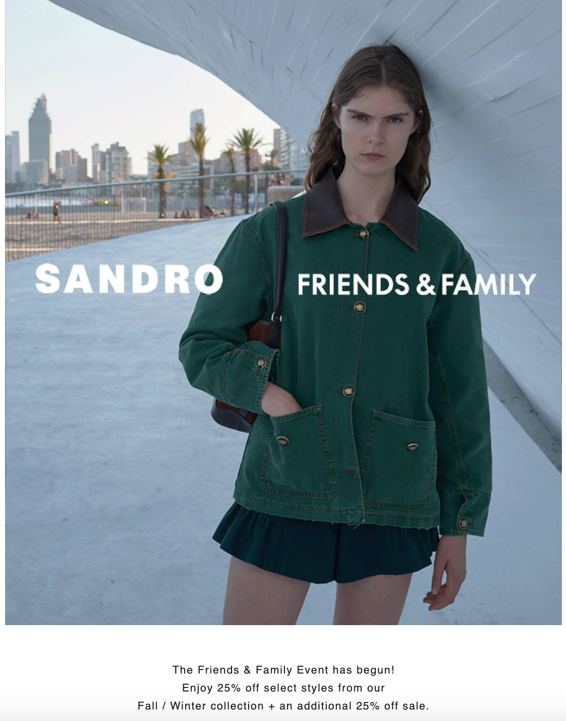 현재 산드로(Sandro) 프랑스 공식 홈페이지에서 FRIENDS&FAMILY 세일이 진행중입니다. Sandro는 1984년 파리에서 설립된 패션 브랜드로, 프렌치 시크와 모던 감각을 동시에 담아낸 디자인으로 유명합니다. 기본에 충실한 테일러링 기법과 트렌디한 디테일을 접목하여, 일상과 비즈니스 환경 모두에서 활용하기 좋은 의류를 선보입니다. 여성 라인에서는 우아하면서도 개성 있는 실루엣이 돋보이며, 남성 라인은 군더더기 없이 깔끔한 디자인이 직장인들에게 인기가 많습니다. 2030 직장인들이 특히 선호하는 브랜드 입니다.