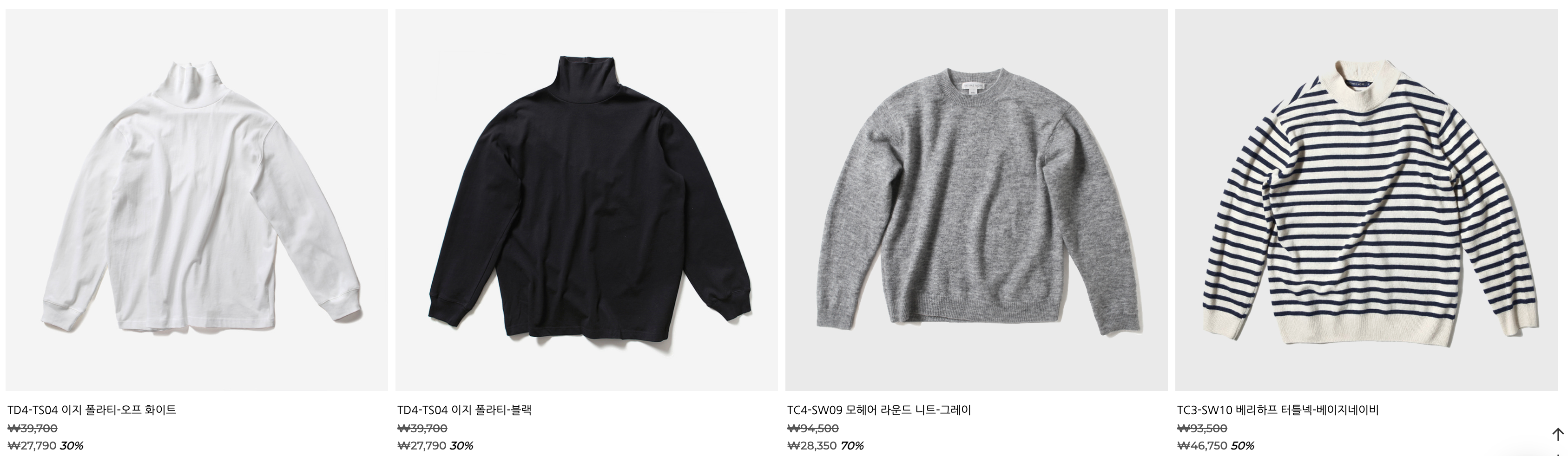 - 특징 : 시즌 오프 중심 세일, 한정 수량 진행 (베이직 아이템이 주력이라 실용적이고 활용도 높은 제품 위주)