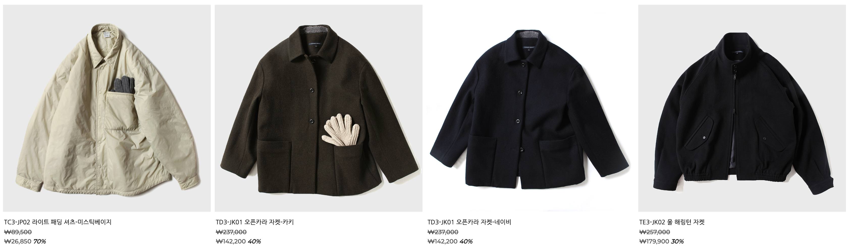 - 아이템군: 자켓, 니트, 셔츠, 팬츠, 아우터 등 기본에 충실한 구성이 주력