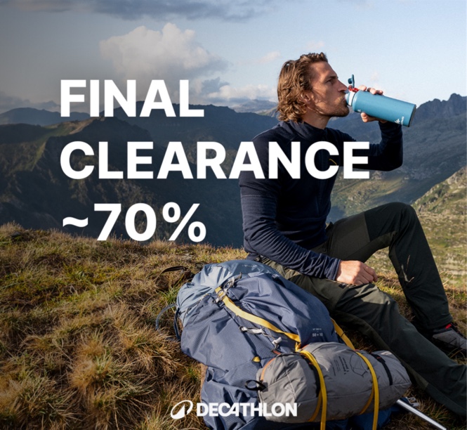 글로벌 스포츠 브랜드 데카트론이 파이널 클리어런스 세일을 시작했습니다! 캠핑, 하이킹부터 러닝, 수영, 트레이닝까지 전 카테고리 인기 아이템이 최대 70% 할인 중입니다. 데카트론 공식몰 클리어런스 카테고리에는 현재 약 1,000개 이상의 상품이 등록되어 있습니다.