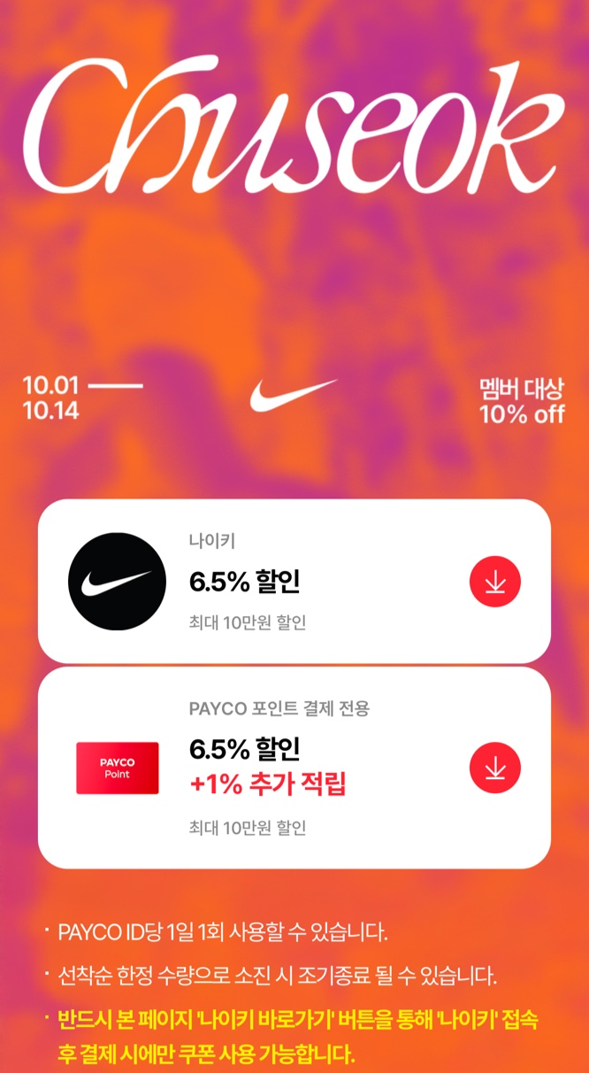 1. 나이키 추석 세일 & 결제 프로모션 🔥