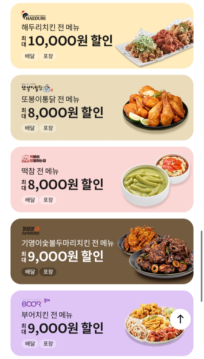 배달 어플 할인 쿠폰/ 배달의 민족 할인 쿠폰/쿠팡이츠 할인쿠폰/요기요 할인쿠폰/치킨 할인쿠폰/피자 할인쿠폰/족발 할인쿠폰/떡볶이 할인쿠폰/버거킹 할인쿠폰/비비큐 할인쿠폰/파파존스 할인쿠폰/푸라닭 할인쿠폰/bhc 할인쿠폰/네네치킨 할인쿠폰/자담치킨 할인쿠폰/ 뚜레쥬르 할인쿠폰/ 맘스터치 할인쿠폰