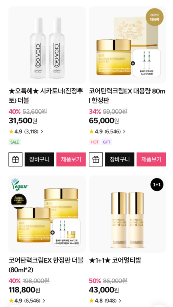 - 코어탄력크림EX 대용량 → 65,000원 (34% 할인)