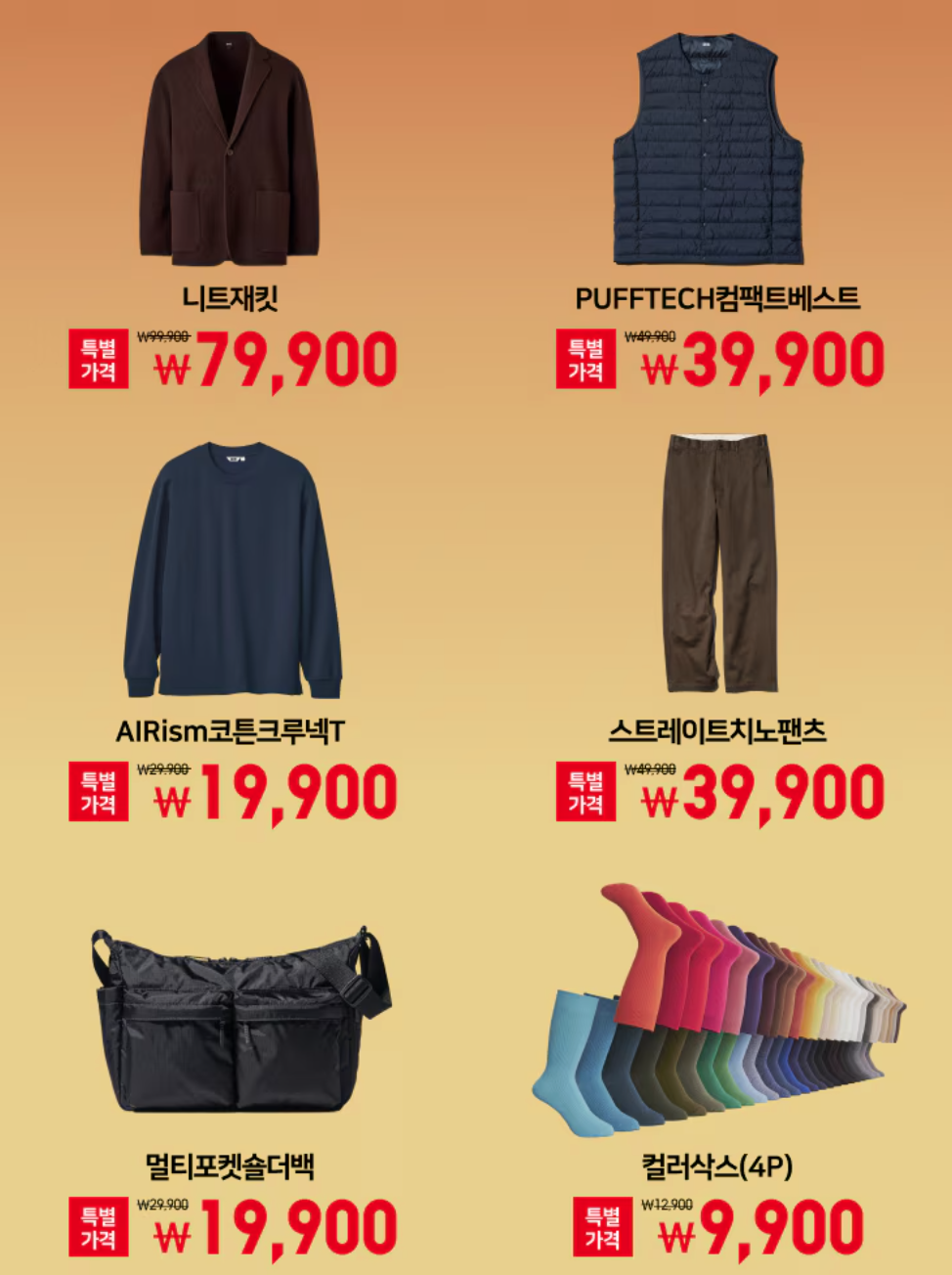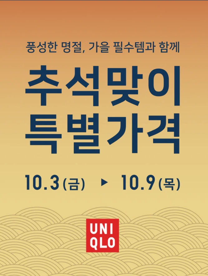 글로벌 패션 브랜드 유니클로(UNIQLO)가 가을 시즌을 맞아 특별 세일을 진행합니다. 이번 세일은 일상에서 자주 찾는 베이직 아이템부터 가을·겨울 필수 아우터까지 다양하게 포함되어 있으며, 2025년 10월 3일(금)부터 10월 9일(목)까지 단 1주일간 진행됩니다. 합리적인 가격에 인기 아이템을 구매할 수 있는 절호의 기회를 놓치지 마세요.
