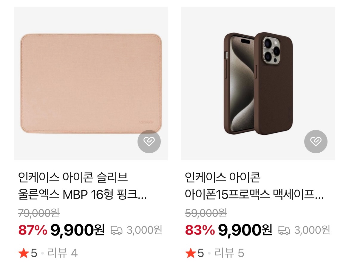 맥북, 아이폰, 에어팟 사용자라면 이미 익숙한 브랜드인 인케이스의 슬리브, 하드쉘, 아이폰 케이스, 백팩 등 인기 제품들을 단기간 동안 만 원 이하 특가로 만나볼 수 있는 기회입니다.