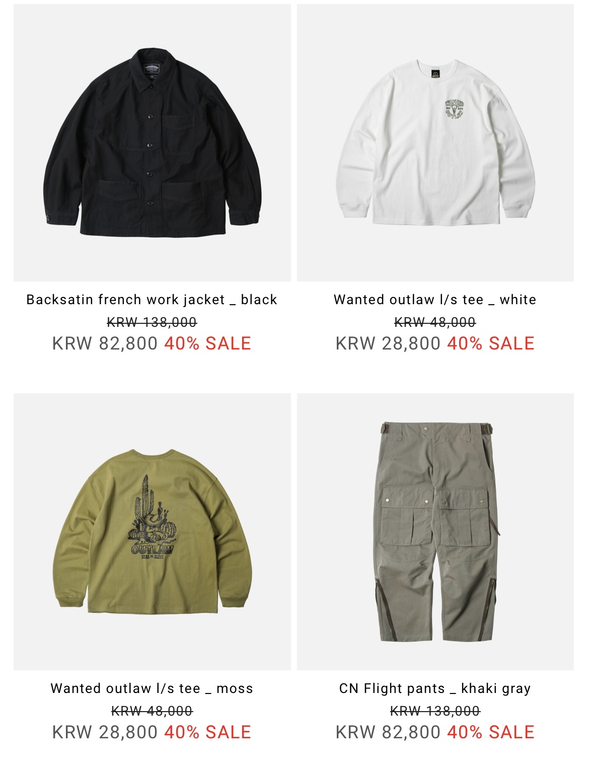 - 클래식 자켓, 워크 팬츠, 데일리 셔츠, 니트 웨어, 아우터 등