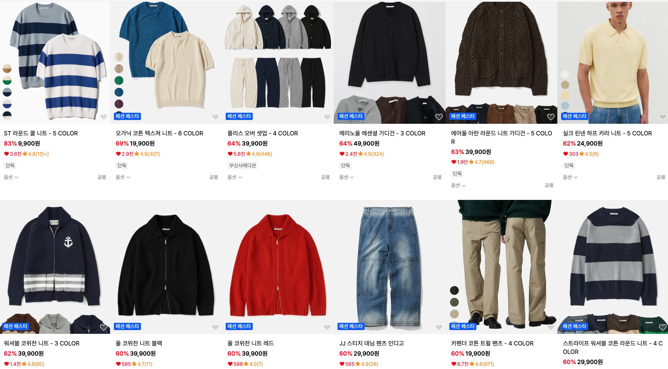 현재 무신사 세일페스타에서 수아레 최대 72% 할인에 추가 30% 할인 쿠폰 제공에 무료반품 혜택까지 제공하고 있습니다. 기존에 정상가도 충분히 가성비 좋은 가격인데, 이렇게 추가 할인까지 제공하면 사실 사지 않을 이유가 없을 것 같습니다. 가성비 있는 기본 아이템이 필요하셨던 분들은 이번 기회에 구매해 보시는 걸 추천합니다. 무료 반품 혜택도 제공 중이니, 주문해서 입어보시고 사이즈가 맞지 않거나 생각했던 것과 다른 경우에 부담 없이 반품도 가능합니다. 반팔 티셔츠부터, 니트, 가디건, 치노 팬츠, 데님 팬츠 등 다양한 상품이 세일에 포함되어 있으니 꼭 한 번 둘러보시는 것을 추천 드립니다. 일부 상품의 경우 주문량이 증가하여 예약 출고 되는 상품들도 있으니 배송 일정 확인 하신 후 구매하세요.
