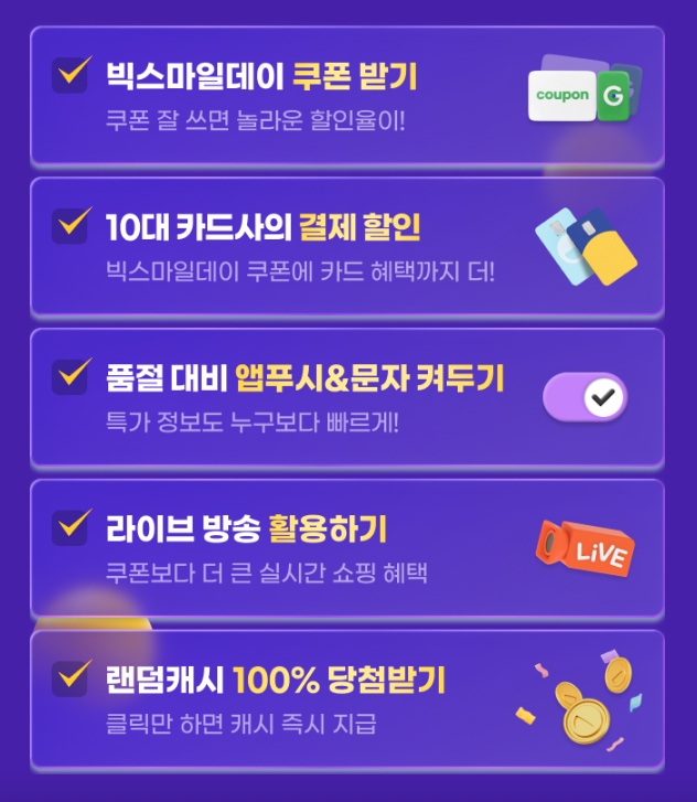 👉🏻 지마켓 빅스마일데이 2025 일정, 혜택 보러가기