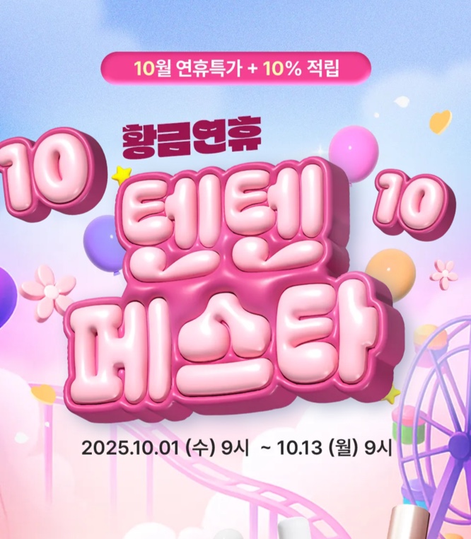 10월 황금연휴를 맞아 클린 뷰티 브랜드 아이소이(ISoi)가 특별한 혜택을 담은 텐텐 페스타를 진행합니다. 풍성한 적립금, 매일 달라지는 특가 상품, 출석체크 이벤트, 금액대별 사은품까지 준비되어 있어 아이소이를 애용하는 고객뿐만 아니라 처음 접하는 분들에게도 좋은 기회가 될 것 같습니다.🛍️ 아이소이 텐텐 페스타 세일 정보 요약진행 기간 : 2025년 10월 1일(수) 오전 9시 ~ 10월 13일(월) 오전 9시주요 혜택무제한 10% 적립 : 10월 1일~13일 동안 실 결제금액의 10% 적립 (아이소이데이 중복 불가)매일 오전 9시 특가 오픈 : 하루마다 다른 제품을 최대 50% 할인된 가격으로 제공출석체크 이벤트 : 매일 소이미니 1,000M 적립, 도장 수에 따라 추가 적립금·상품 추첨추가 사..